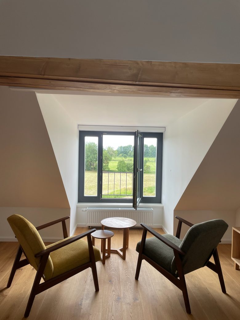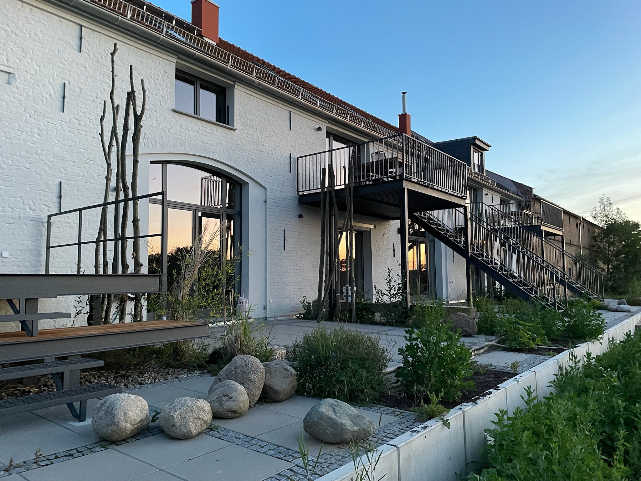 Unsere Ferienwohnungen liegen in einem liebevoll umgebauten Scheunenensemble am Rande eines Naturschutzgebiets – umgeben von weiten Wiesen, alten Bäumen und stillen Wegen. Große Fensterfronten holen die Natur ins Haus, natürliche Materialien schaffen eine warme Atmosphäre. Architektur und Landschaft verschmelzen hier zu einem besonderen Wohnerlebnis.